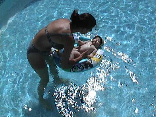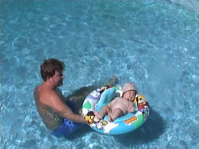 in m'n zwemband het bad in! |